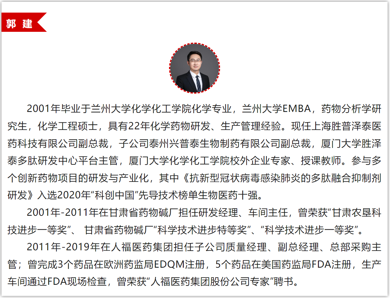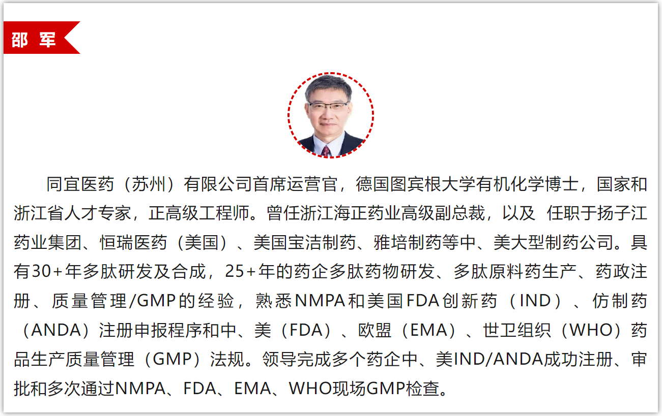 11:10-11:40 | 吳海剛 | 多肽API供應鏈的機遇和挑戰(zhàn) | |