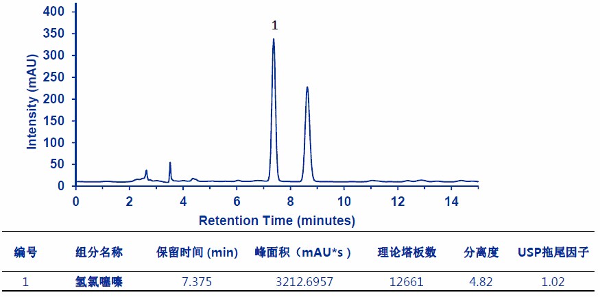 ????珍菊降壓片的修訂涉及氫氯噻嗪、蘆丁的含量測定,鹽酸可樂定的含量測定和蒙花苷的含量測定。默克應(yīng)用實(shí)驗(yàn)室根據(jù)2015版藥典對這些檢測項(xiàng)目的技術(shù)要求,推薦的解決方案如下。