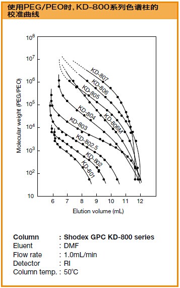 KD-800系列色譜柱的校準(zhǔn)曲線
